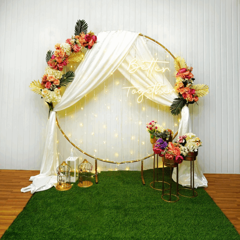 Personalized Backdrops – With your names, anniversary year, or special messages.