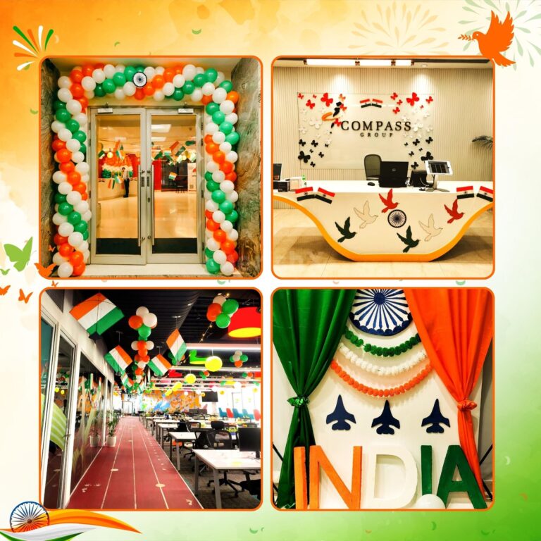 Schools & Colleges – Tricolor balloon arches, flag-themed backdrops, and stage setups for ceremonies and cultural programs.