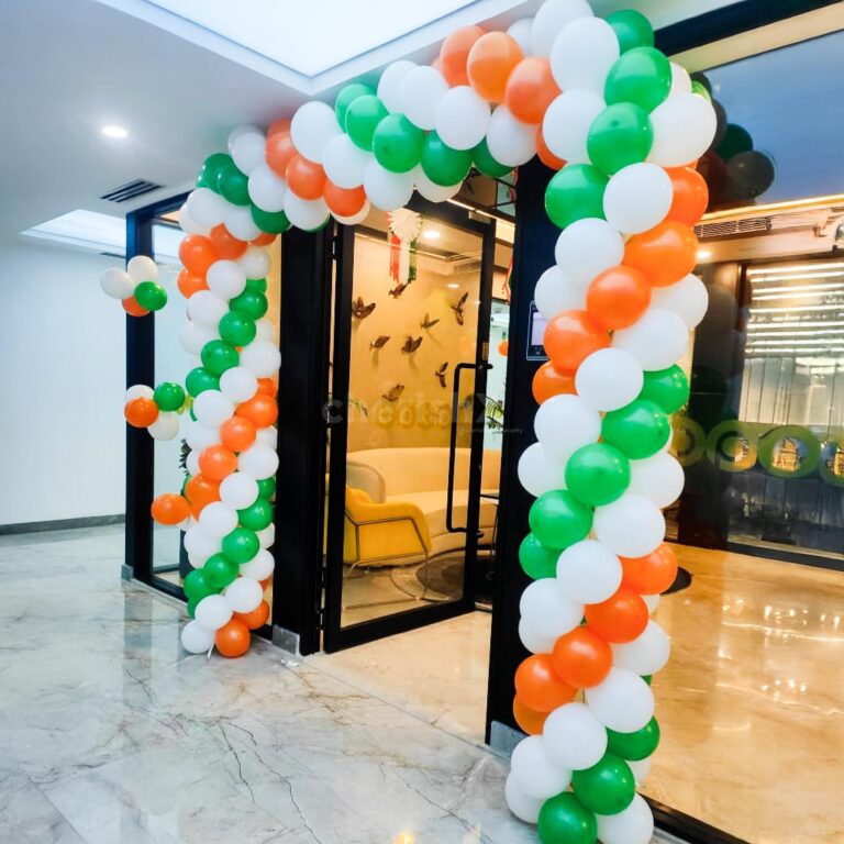 Independence Day is more than just a national holiday—it’s a reminder of our country’s journey, the sacrifices made for our freedom, and the unity that binds us together. It’s the perfect time to celebrate with colleagues, classmates, neighbors, and family in a setting that radiates patriotism and joy. At Balloon Decoration Hyderabad, we bring the tricolor to life with our Independence Day balloon decoration services. From grand stages to small gathering spaces, our vibrant tricolor balloon setups transform any venue into a festive and Insta-worthy celebration of India’s independence. With years of experience in event décor, our expert team ensures every setup captures the true spirit of August 15—whether it’s an office celebration, school flag-hoisting ceremony, society gathering, or private home event.